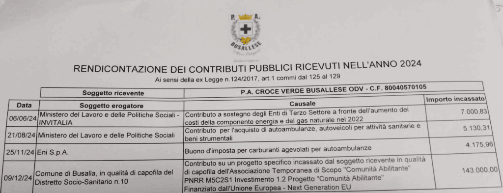 Pubblichiamo il rendiconto dei contributi pubblici ricevuti ai sensi